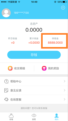 打开后,下载云端理财app,注册为会员,即可获得8888元体验金。