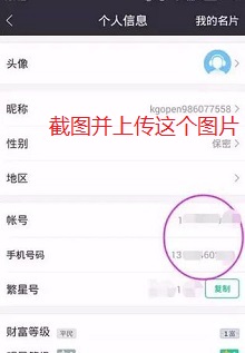 2.点击“去下载”安装“酷狗直播”app,同样用你领取红包的小号登录,找到“个人信息”并截图,如下图: