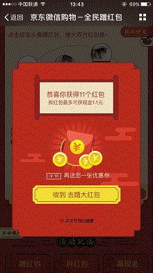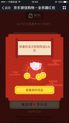 2.按提示登录京东的账户,可看到你获得的红包,拆开即可,一天可拆3个。