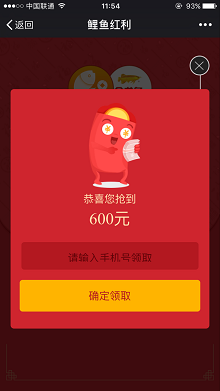 2.确认你登录后,点击抢红包,它会提示你抢到了600元(其实相当于6元现金),如果提示抢完说明活动结束,就别做了。