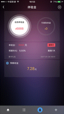 3.完成后,可获得6888元体验金,记得点一下“使用”。