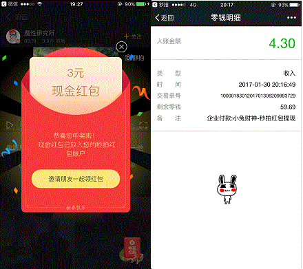 秒拍是本站推荐过的,当时联合新浪微博送0.5元,当然很多人瞧不上。这次秒拍又做活动了,新注册用户可免费领取2元红包,能直接提现,活动期间每天分享一下也能至少获得一个现金红包,金额随机,一般都在1元以上。