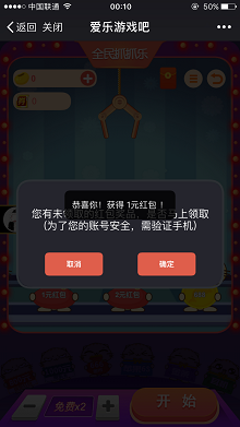 通过微信参与“爱乐游戏吧”的一个抓娃娃小游戏,即可免费抓到1-3元微信红包,亲测我中了2次,也就是2元。不过,现在暂时收不到验证码,无法绑定手机号,所以兑换不了红包,客服也早睡觉了,这种活动也黄的比较快,建议都先抓到红包了再说!