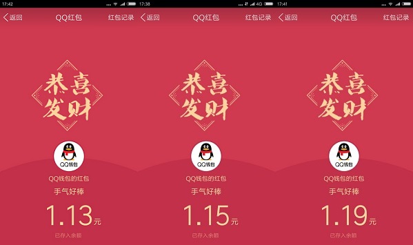 3.亲测支付3次1元,抽到了1.13、1.15、1.19元红包!