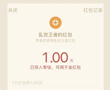 乱世王者是腾讯旗下的手机游戏,当前做活动,新用户下载游戏登录下即可免费领取1-188元微信红包,其实一般都是1元啦,188只是个噱头!不知道限不限设备,号多的可以试下,秒推红包的。
