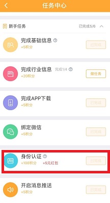 3.登录后,在“我的”-“任务中心”可看到实身份认证送5元红包。