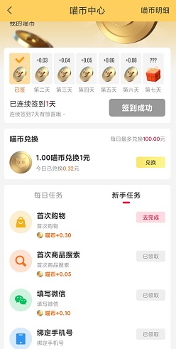 3.可以获得0.5喵币左右,兑换0.5元左右现金。