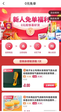 4.在首页进入0元购,找到自己想买的商品,进入领红包和淘礼金,0元下单。
